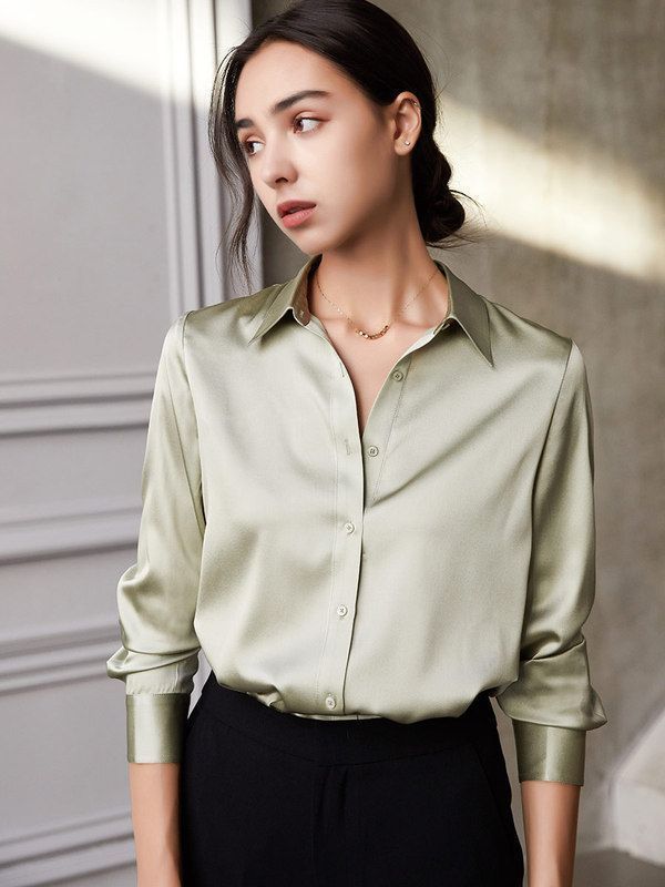 Pointed-collar Satin Women’s Dress Shirt