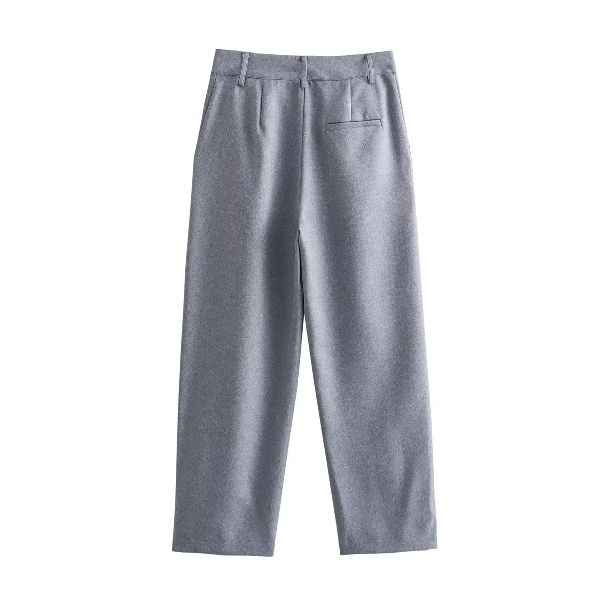 - The trousers feature a high waist with pleats, a button – and – loop closure, belt loops, and clean, pressed creases.